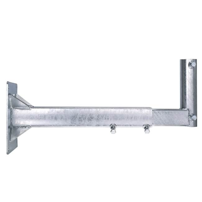 Dieser ausziehbare XL Wandhalter aus feuerverzinktem Stahl ermöglicht eine stabile und flexible Montage von Antennen, auch bei größeren Wandabständen. Der Halter lässt sich von 53 bis 85 cm ausziehen und ist dank Verstärkungsrippen und einer extra grossen Montageplatte besonders robust. Ideal für Sat-Antennen, Funkantennen und andere Mastinstallationen.