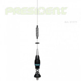 Antenne radio CB de President pour une utilisation en voiture ou en camion avec un radiateur en acier inoxydable.