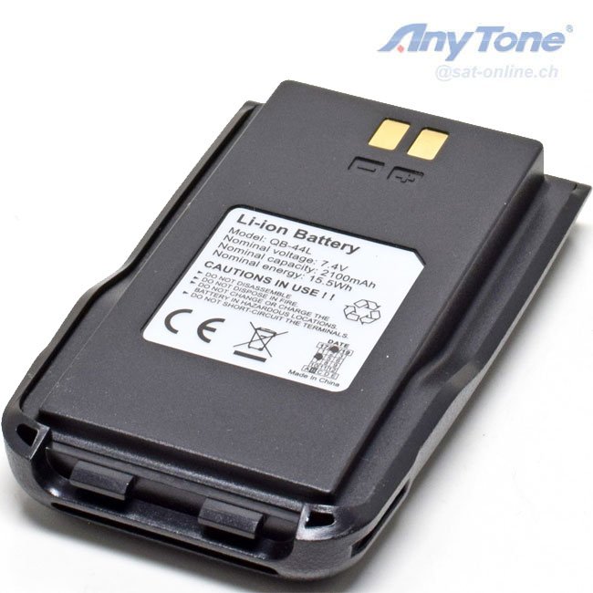 Original AnyTone QB-44H Li-Ion Akku mit 2100 mAh für die Handfunkgeräte AnyTone AT-D868UV und AnyTone AT-D878UV. Dieser Ersatzakku sorgt für eine zuverlässige Energieversorgung und lange Betriebsdauer – ideal als Ersatz- oder Zusatzakku. Der Akku wird ohne Gürtelclip geliefert.