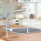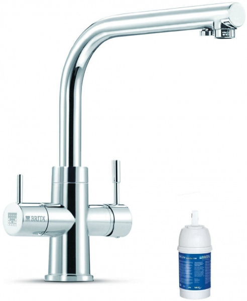 Le raccord BRITA a deux leviers. Un pour l’eau non filtrée, avec laquelle vous contrôlez également la température et le débit du robinet et un levier avec le logo BRITA, exclusivement sur BRITA une eau optimisée peut être obtenue.