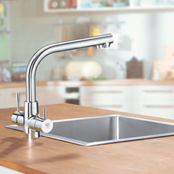 Profitez de l'eau fraîche filtrée par BRITA en un instant, rapide, pratique et facile, directement du robinet BRITA.