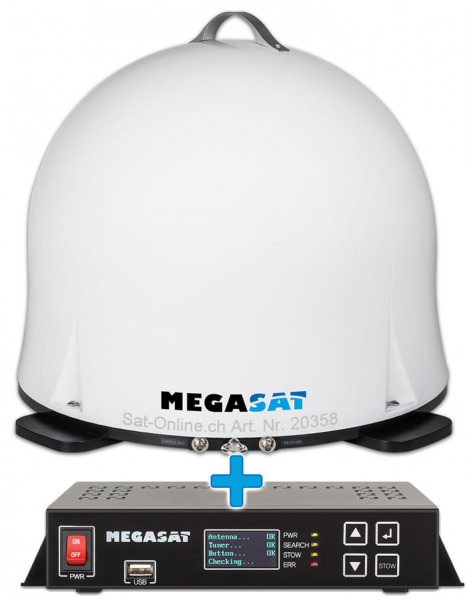 Diese mobile Satellitenantenne ist ideal für unterwegs und hat einen automatischem Positionierer resp. Auto Skew.So praktisch und angenehm ein Schattenplatz unter dichten Bäumen im Sommer auch ist, für den Fernsehempfang im Reisemobil oder Caravan ist der Standort nicht ideal, wenn die Satelliten-Antenne fest auf dem Fahrzeug montiert ist. Besitzer der Campingman Portable 2 geniessen hingegen ungestörten Empfang, denn sie stellen die mobile Antenne dort auf, wo freie Sicht zum Satelliten herrscht. Auf dem Caravan-Salon wurde die Campingman Portable 2 vor gestellt. Die Version 2 ist deutlich kompakter als sein Vorgänger und kommt auf eine Höhe von nur noch 39cm (10cm wengiger als beim bisherigen Gerät). Auch beim Gewicht hat der Neue abgespeckt: 4,5 statt wie bisher sechs Kilogramm bringt der Campingman Portable 2 jetzt auf die Waage. Ausserdem wurde bei der Portable 2 von Megasat gegenüber seinem Vorgänger die  Geräuschentwicklung und und die Empfangsleistung verbessert um auch an den Randzonen z.B. die SRG SSR Sender sauber in HD Empfangen zu können.