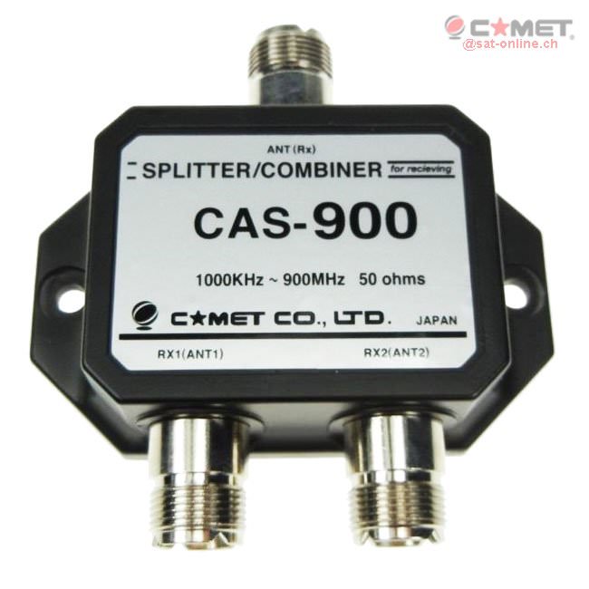 Der CAS900 kann für folgende Zwecke verwendet werden: 2 Funk-Empfänger an einer Funk-Antenne, oder für 2 Funk-Antennen an einem Empfänger genutzt werden. Dadurch Antennen-Eingänge auch Ausgänge und umgekehrt. Der CAS-900 von Comet besitzt ein stabiles Metallgehäuse mit Montagelöchern für Wandmontage, etc.