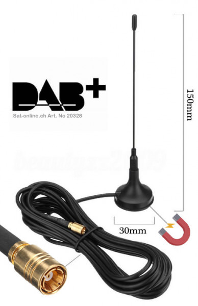 Sehr starke DAB+ Antenne für mobilen oder stationären Einsatz mit Magnet Sockel.