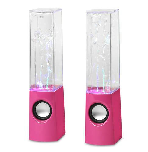 Das Colorsplash Pink Wasserspiel-Lautsprecherset bietet mehr als nur Klang: Die integrierten Wasserfontänen bewegen sich im Takt der Musik und werden durch farbige LED-Beleuchtung effektvoll in Szene gesetzt. Die Lautsprecher können einfach über den 3,5 mm Audioanschluss an Smartphone, Tablet, MP3-Player oder PC angeschlossen werden. Eine zusätzliche Stromversorgung per USB reicht aus, um ein beeindruckendes Zusammenspiel aus Licht, Wasser und Musik zu erzeugen – ideal für Partystimmung oder als dekorativer Eyecatcher im Raum.
