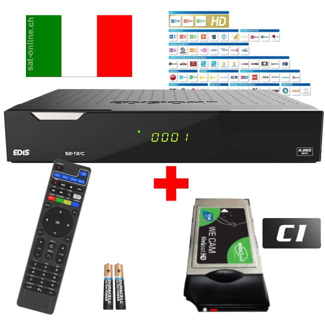 Der EDITALIA HD + Tivusat ist ein vielseitiger HD-Combo-Receiver für den Empfang digitaler TV-Programme über Satellit, Antenne oder Kabel. Dank integriertem CI-Schacht mit Tivùsat Kartenleser ist der Receiver optimal vorbereitet für den Empfang verschlüsselter italienischer Sender via Satellit.