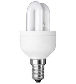 Energiesparlampe 5 W mit E14 Sockel – 2-Rohrtechnik