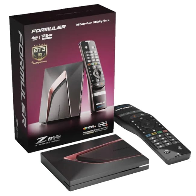 Der Formuler Z12 Ultra ist eine leistungsstarke 4K Android TV Box für anspruchsvolle Anwender, die Wert auf maximale Performance, moderne Konnektivität und hochwertige Bild- und Tonformate legen. Dank schnellem Realtek-Prozessor, 4 GB RAM und grosszügigem 128 GB eMMC-Speicher eignet sich das Gerät ideal für IPTV, Streaming, lokale Medienwiedergabe sowie interne Aufnahmen und Timeshift. Android 12 bildet die aktuelle und stabile Plattform für Apps und Multimedia.