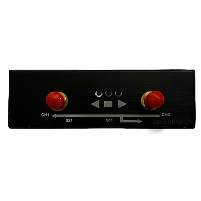 Es stehen zwei SMA-Buchsen für die Messung der S-Parameter S11 und S21 zur Verfügung. Damit sind Reflexions- und Transmission-Messungen möglich, also Messung von Impedanz, SWR, Dämpfung, Anpassung, Kabellänge uvm. Die maximale Ausgangsleistung ist frequenzabhängig und beträgt zwischen -14 und -9dBm. Der Dynamikbereich für Reflexionsmessungen (S11) beträgt 70 dB oder besser bis 1.5 GHz und 60 dB oder besser im Bereich von 1.5 bis 3 GHz. Das ist mehr als ausreichend, um die üblichen Prüfungen wie SWR, Impedanz usw. mit guter Genauigkeit vorzunehmen.