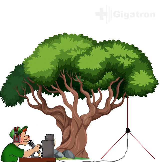 Wer diese Antenne gerne auf dem Feld benutzen möchte kann selbstverständlich die Radials mittels Hanfschnur oder Ähnlichem und Boden-Heringe im richtigen Winkel auf den Boden Spannen. Auch hier gilt der optimale Abstand von mindestens einer Viertel-Lambda ab Boden, was ca. beim CB Band 2,5 Meter ist.