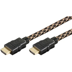 Hochwertiges High Speed HDMI Kabel mit Ethernet im robusten Nylonmantel (schwarz/gold) – ideal für den Anschluss von Fernsehern, Monitoren, Beamern, Spielekonsolen und weiteren HDMI-Geräten. Das Kabel entspricht dem aktuellen High Speed HDMI Standard und ermöglicht die Übertragung von 4K-Ultra-HD-Inhalten sowie 3D-, Audio- und Netzwerksignalen über eine einzige Leitung.