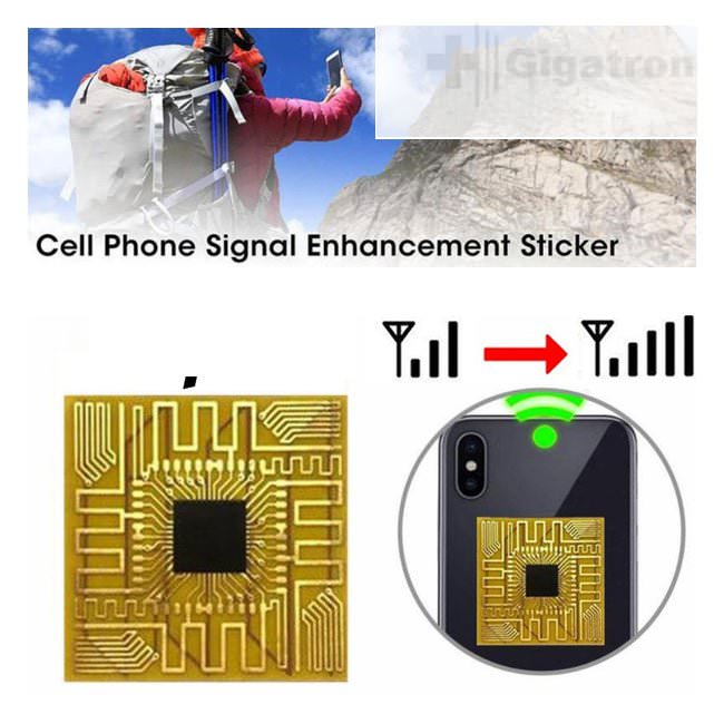 Der Handy-Booster Plus kann den Empfangseffekt des Mobiltelefons beträchtlich verbessern. Es ist ein Antennenverstärker für Mobiltelefone mit Direktor-Effekt. Diese Variante von Antennenverstärker ist jetzt stärker und hat eine glänzende Goldfarbe. Verbessern Sie mit diesem Sticker, welcher einfach hinter dem Handy aufgeklebt wird den Empfangseffekt. Die Installation ist einfach: Einfach aufkleben und den Unterschied feststellen.