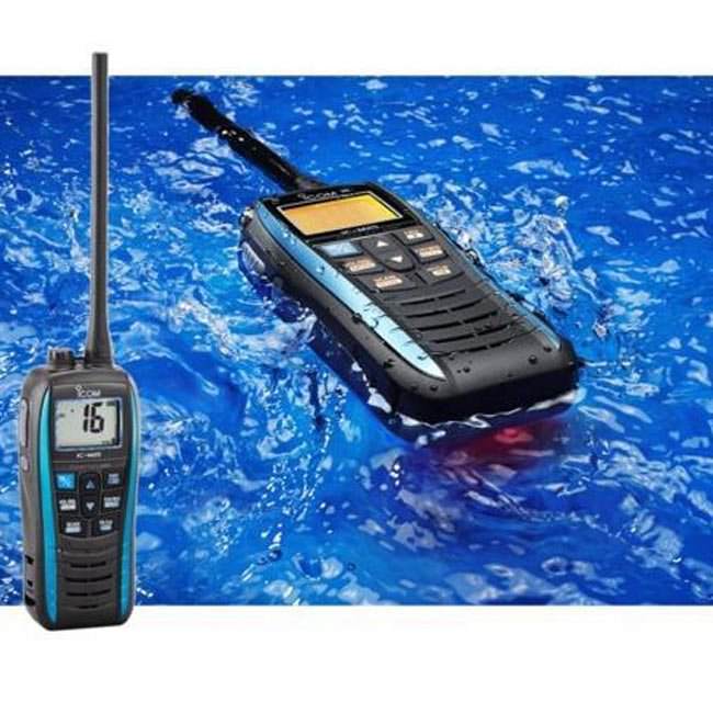 Wenn das IC-M25EURO EVO ins Wasser fällt, treibt es an der Oberfläche, blinkt und ein Alarm ertönt. Damit lässt sich ein eventueller Verlust bei Aktivitäten auf dem Wasser vermeiden.