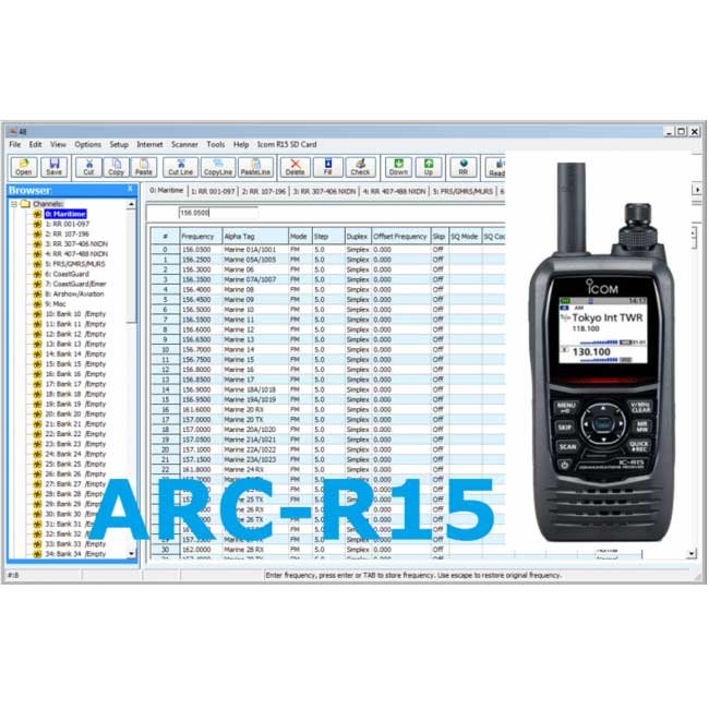 Mit der ARC-R15 Software verwalten Sie Ihre Frequenzlisten effizient in einer benutzerfreundlichen Tabellenoberflaeche. Kanäle koennen Sie ganz einfach kopieren, einfuegen, importieren, sortieren oder duplizieren – ideal fuer Hobby- sowie professionelle Anwender. Die Software nutzt das SD-Karten-CSV-Format des ICOM IC-R15 zur Datenuebertragung und bietet Flexibilitaet und Komfort bei der Konfiguration Ihres Scanners.