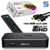 Die MAG 256 Box erfüllt alle Anforderungen moderner Multimedia-Geräte, einschliesslich der Unterstützung von Video-Streaming, Video on Demand (VoD) sowie der Wiedergabe von digitalen Kanälen in hoher Bildqualität (Full HD 1080p) und wird in der Schweiz durch die Firma Satonline als Generalimporteur vertrieben. Die MAG256 Box ist mit zwei USB-Schnittstellen ausgestattet, wodurch sich dem Zuschauer neue Möglichkeiten anbieten: Kabelloser Internetzugang mit Hilfe eines WLAN-Adapters (Wifi-Stick), Contentwiedergabe von Video / Fotokameras oder anderer Mediengeräte, sowie die Aufzeichnung auf externe Datenträger. Höchstmögliche Video- und Audioqualität wird durch den HDMI-Ausgang und den optischen Audioausgang S/PDIF gewährleistet. Wer doch lieber gleich auf den neuesten 4K UHD Standard setzen möchte, kann sich für die MAG 520, oder die Gigatron 360 entscheiden.