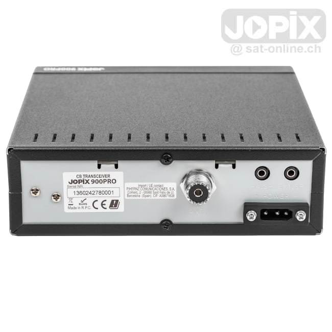 Das Jopix 900Pro ist ein mobiles CB-Funkgerät für den 27-MHz-Bereich mit Multi-Standard-Funktion, das sich automatisch an die Kanalnorm des jeweiligen Landes anpasst. Trotz seiner kompakten Bauweise bietet es eine Vielzahl fortschrittlicher Funktionen für eine zuverlässige Kommunikation.