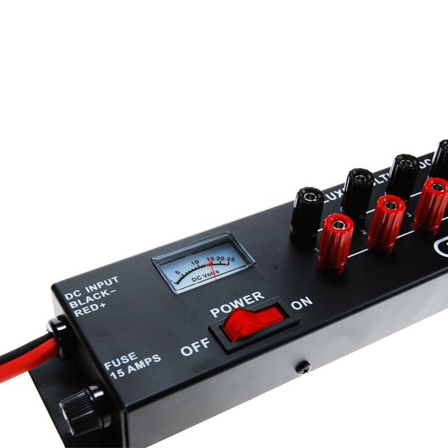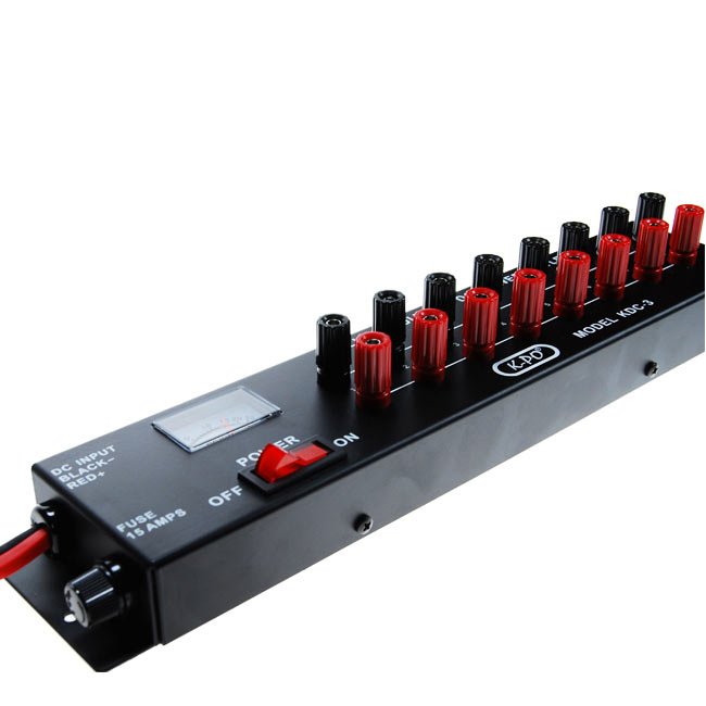 Der K-PO KDC-3 DC-Stromverteiler ermöglicht den sicheren und geordneten Anschluss von bis zu 8 Geräten an ein Netzteil mit 0–25 Volt DC. Ideal für Funkstationen, Labore oder Werkstätten, wo mehrere Verbraucher gleichzeitig mit Spannung versorgt werden müssen. Das robuste Metallgehäuse und die integrierte Sicherung machen das K-PO KDC-3 zu einer zuverlässigen Ergänzung jeder Funk- oder Messumgebung.