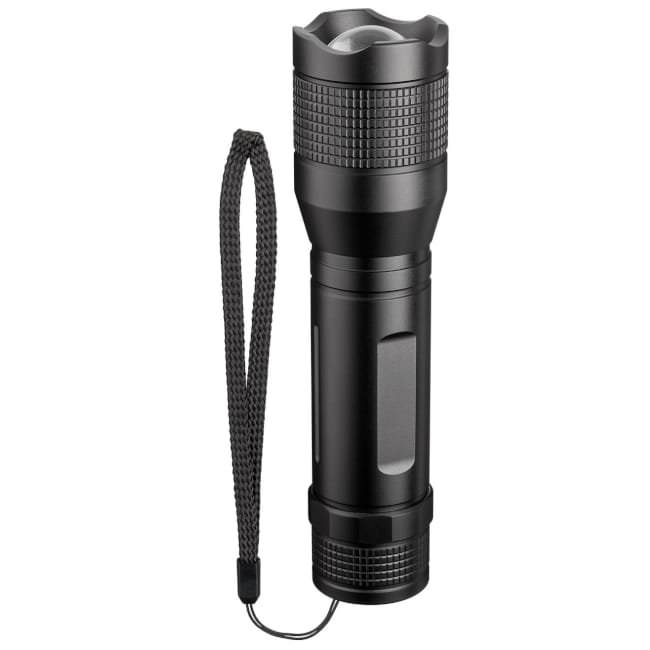 La lampe de poche dispose d'une fonction zoom : la tête de la lampe avec bague de focalisation sert à régler le faisceau lumineux en continu.