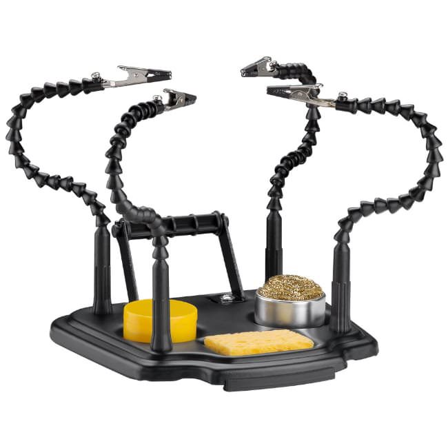 Die Löthilfe mit 4 flexiblen Schwanenhals-Armen und Krokodilklemmen ist die zuverlässige dritte Hand beim