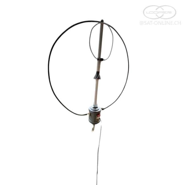Magnetloop-Antenne mit integrierter Rotatorfunktion, speziell konzipiert für den Einsatz auf dem Balkon, Fensterbrett, Tisch oder bei temporären Stationen im Innen- oder Außenbereich (geschützt vor Regen). Trotz ihres geringen Gewichts ermöglicht sie einen vollwertigen Betrieb auf den wichtigsten Kurzwellen- und CB-Bändern.