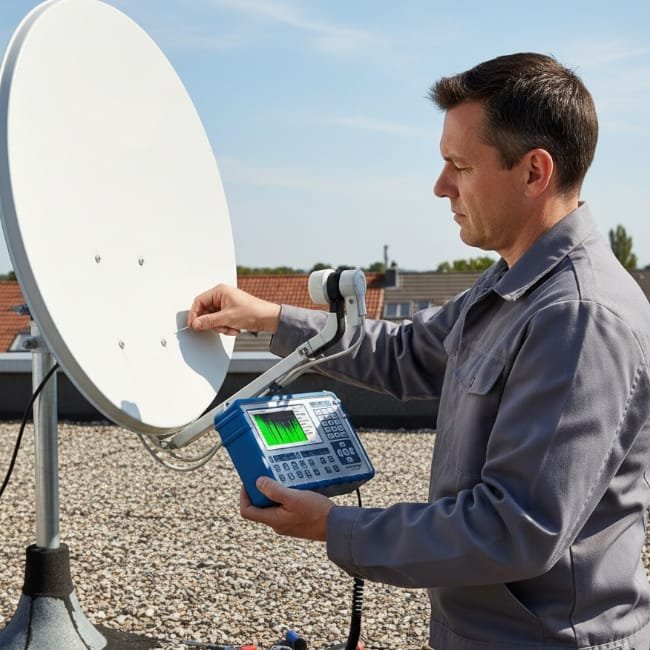 Un calcul d'angle intégré facilite l'alignement correct de l'antenne satellite après avoir pénétré dans le lieu.
