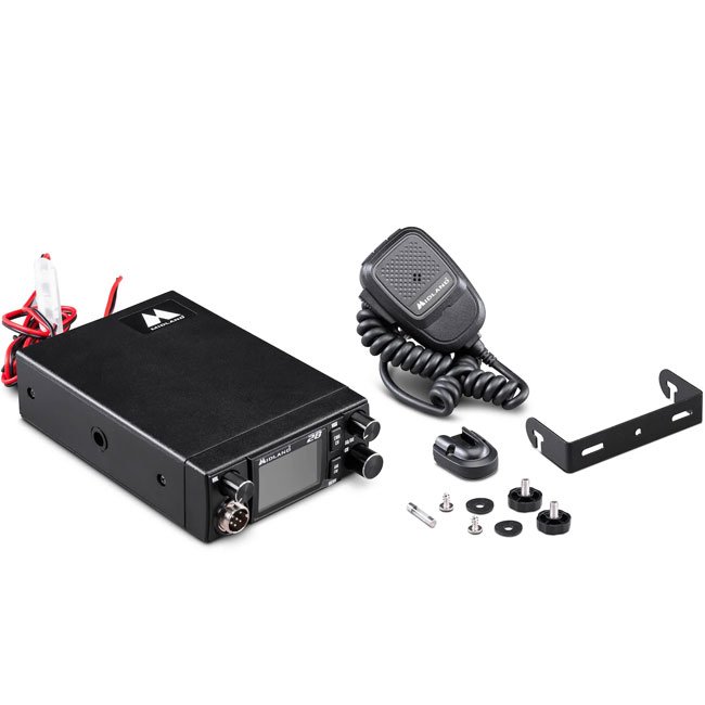 Midland 28 CB-Funkgerät, Mikrofon, Stromkabel, Montagebügel, Mikrofonhalterung, Bedienungsanleitung