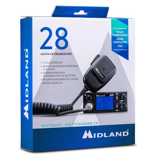 Das Midland 28 ist ein leistungsstarkes CB-Funkgerät mit 40 Kanälen AM/FM, das sowohl für den Einsatz im Auto als auch im LKW konzipiert wurde. Es bietet ein modernes 2-Zoll-LCD-Display mit 7 Hintergrundfarben, digitale Rauschsperre, dreistufige Noise Cancelling-Funktion und eine VOX-Freisprechfunktion mit 5 Empfindlichkeitsstufen.