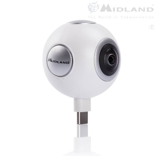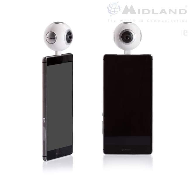 Die Midland H360 Smart Panoramic Cam erweitert Ihr Smartphone um beeindruckende 360°-Aufnahmen mit einer Auflösung von 2048x1024 Pixeln. Dank integriertem Stabilisator gelingen auch unterwegs flüssige Videos.
