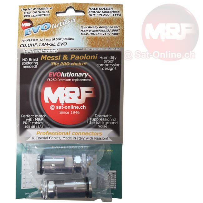 Doppelpack EVO Professional-Line PL-Stecker von Messi & Paoloni für 13 mm Koaxialkabel wie z.B. Hyperflex 13, und Ultraflex 13 Antennenkabel.