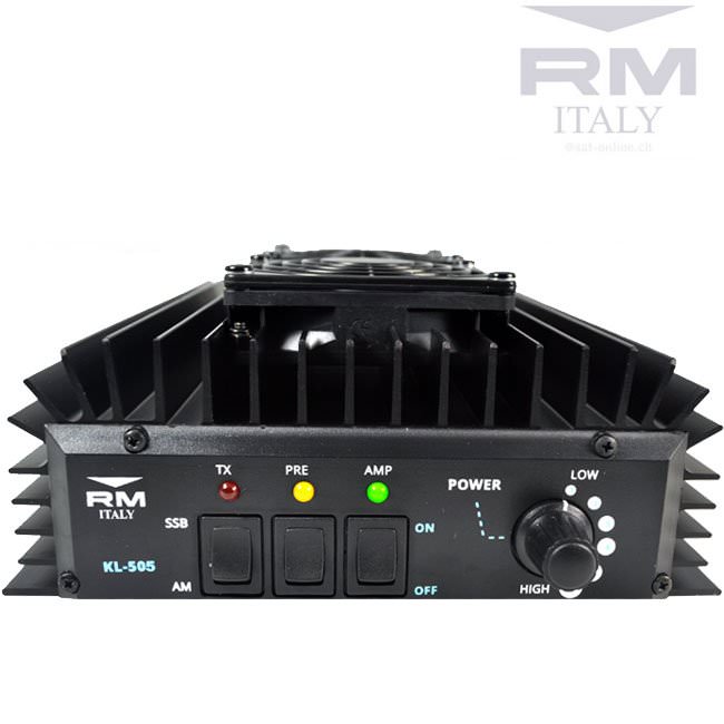 Un amplificatore di ricezione commutabile da 26 dB integrato garantisce le regolazioni appropriate del segnale. La potenza di uscita di trasmissione di questo amplificatore di potenza della RM-Italy può essere commutata su 6 livelli e inizia con circa 50 Watt e arriva fino a un massimo di circa 230 Watt AM/FM. RM KL505 è adatto anche per ricetrasmettitori QRP, come lo Yaesu FT-817ND, poiché il minimo è 1 watt. A differenza della versione KL-505, il KL-505V dispone anche di una ventola per il raffreddamento.