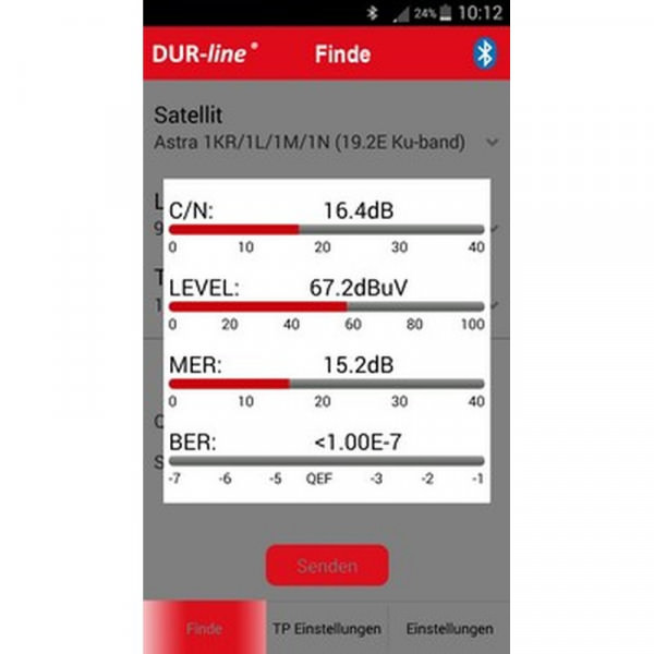Weitere Messdaten über App (Pegel, CN, BER, MER)