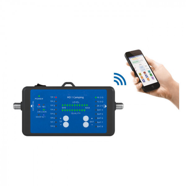 Das Sat Messgerät HD 1 Camping ist das ideale Hilfsmittel um Ihre Satellitenschüssel beim Camping in kürzester Zeit auszurichten. Das HD 1 Camping Messgerät zeigt auf den ersten Blick die wichtigsten Messwerte wie Signalqualität und Signalstärke an. Der gewünschte Satellit und Transponder lassen sich bequem auf Knopfdruck auswählen. Dank Bluetooth Anbindung zu Android und iOS Smartphones können über die kostenlos erhältliche App noch detailliertere Messwerte wie Spektrum und Konstellation angezeigt werden. Die App enthält auch eine praktische Kompassfunktion sowie ein Werkzeug zur Winkelberechnung.