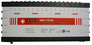HQ Multischalter 17/8 - DMC Swiss mit externem Netzteil für 8 Teilnehmer und 4 Satelliten, Eingang für 16 Sat-Ebenen, 1 Terrestrik Eingang.