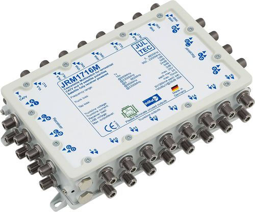 Beim JRM1708T handelt es sich um einen Multischalter für komplett receivergespeiste Verteilnetze für vier Satellitensysteme in kompakter Bauform. Durch ein neues energieeffizientes Powermanagement ist ein einzelner Receiver in der Lage, sowohl den Multischalter als auch die angeschlossenen Quatro-LNBs mit Energie zu versorgen. Dabei versorgt der Receiver maximal das LNB, von dem er auch Programme empfängt. Dadurch ist am Multischalter kein Netzteil erforderlich und es treten keine Standby-Verluste auf (also absolut kein Stromverbrauch, wenn alle Empfangsgeräte ausgeschaltet sind).