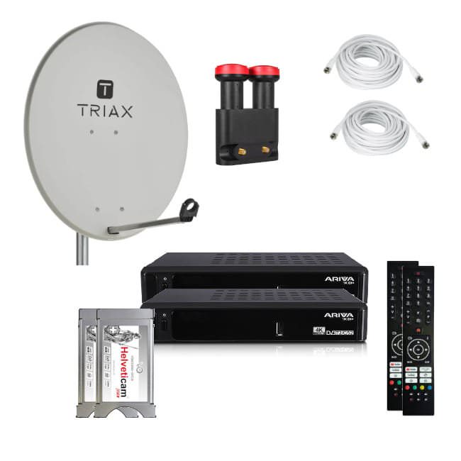 Triax 80cm Antenne + Monoblock + Ariva 4K Receiver mit Viaccess Helveticam + 10 m Kabel