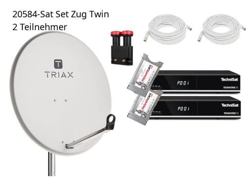 Sat Set bestehend aus 80cm Antenne + 2x Technistar S5 HD Receiver + 2x Helveticam Pro + 2x 10 Meter Kabel + Twin Monoblock