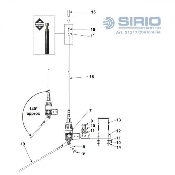 Cette antenne de balcon est réalisée selon le principe 1/4 lambda et offre une bande passante radio de 26-27,6 MHz (accordable). Sa capacité de charge continue maximale est de 300 watts.