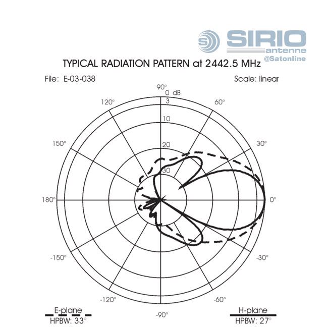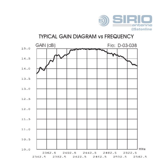 Die Sirio SDC-2.4-15 ist eine WLAN Richtungs-Basisstationsantenne für den Aussenbereich mit 2400-2485 MHz. Das Strahlungselement aus Messing wird in ein Metallgehäuse montiert und ist in einer eine thermoplastische Abdeckung versiegelt.