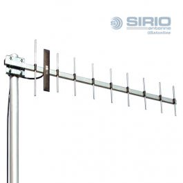 Die SY910 des Antennenherstellers Sirio arbeitet auf einer Frequenz von 698-960 MHz. Der Ausleger und die parasitären Elemente bestehen aus Aluminium und der Strahlungsdipol besteht aus PCB in Microstrip-Technologie geschützt durch Thermoplast.