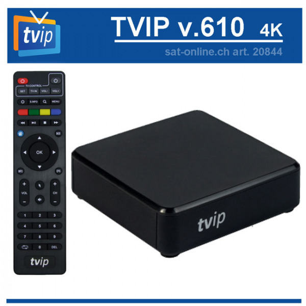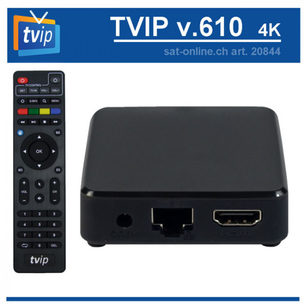 Bei der TVIP v.610 Box handelt es sich um eine neuste Entwicklung von TVIP welche in sich das Maximum an technischen Möglichkeiten vereint. Dieses Produkt erfüllt alle vom Anbieter gestellten Breitband Anforderungen. In diesem Zusammenhang wird dem Endverbraucher eine unübertreffliche bequeme Nutzung ermöglicht. Die TVIP S-Box v.605 Konsole erfüllt alle modernen Anforderungen an ein Multimediagerät, einschliesslich der Unterstützung von Streaming Media, Video auf Anfrage (VoD), Wiedergabe von digitalen Kanälen in einer hohen Qualität, sowie den Zugang zum OTT-Content (YouTube, Picasa, Online-Kino, Wettervorhersage, Soziale Netzwerke und andere) und enthält sogar einen Webbrowser.
