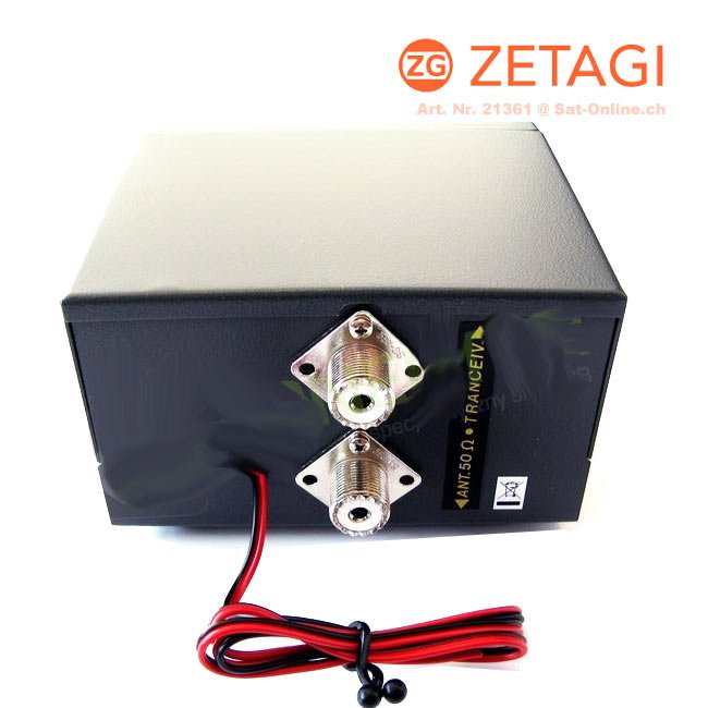 Questo amplificatore ricevitore infinitamente variabile del marchio Zetagi (da -10 a + 30dB) con commutazione automatica RX / TX, interruttore on / off, interruttore di modalità (AM / FM - SSB / CW) e lampada di controllo ON-AIR è appositamente progettato per CB radio e per dispositivi radioamatori da 10 m.