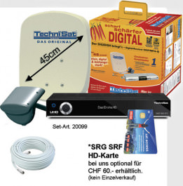 Mit diesem kompakten Satellitenset empfangen Sie zwei Orbitalpositionen: Astra 19° & Hotbird 13° ohne drehen und ohne zusätzlicher Multischaltertechnik.