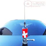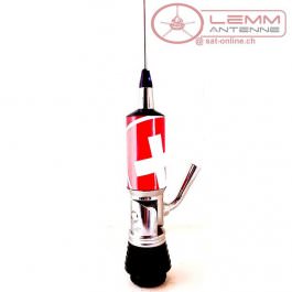 Swiss-Star Miniturbo CB Funkantenne, was die Funkreichweite etwas erhöht. Das auf der handgefertigten Spule aufgedruckte Schweizerwappen macht diese Antenne zum echten "Hingucker".
